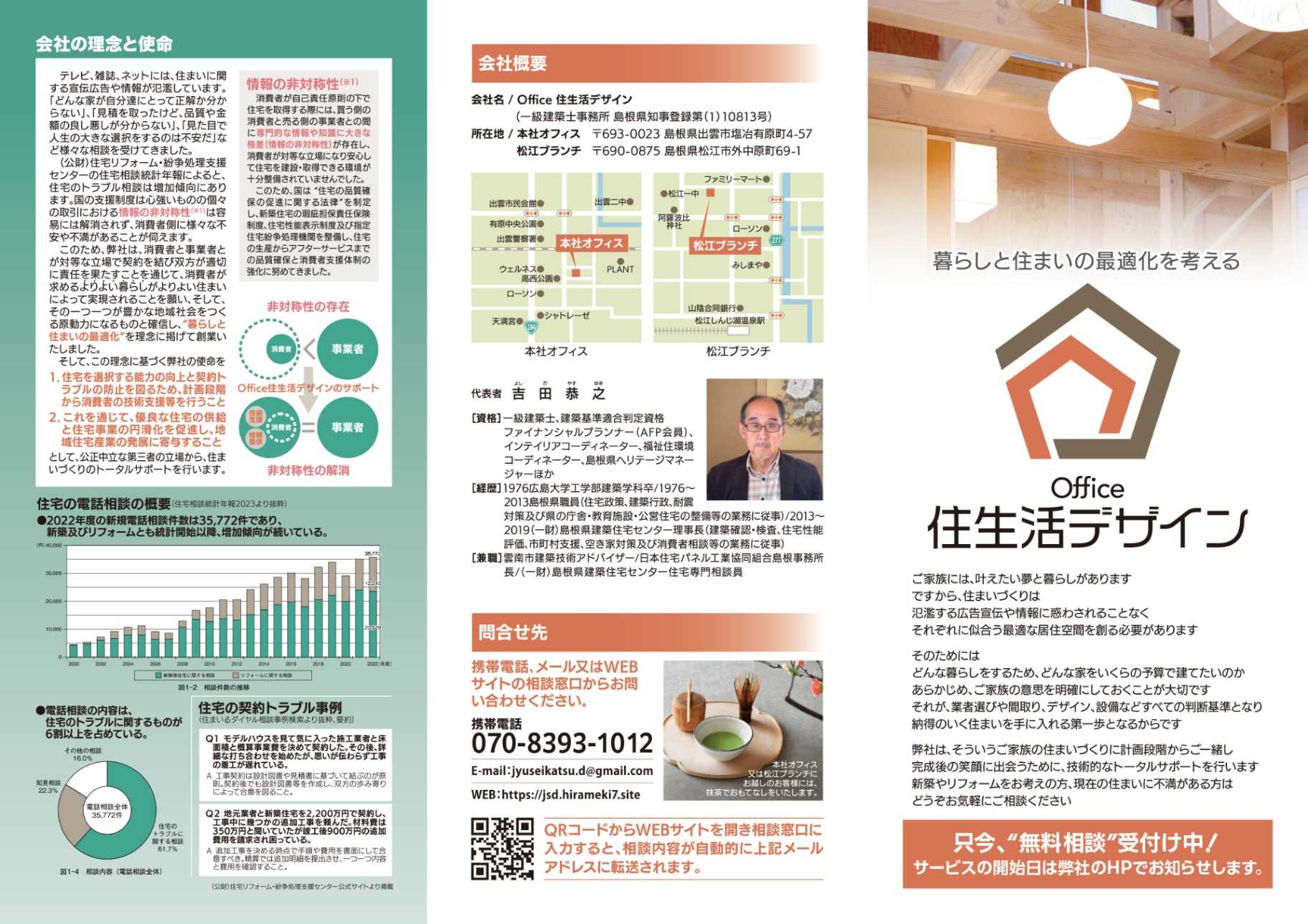 (一財)島根県建築住宅センターの住宅専門相談員として、松江市空き家相談会(会場;松江テルサ)に参加しました。今後も空き家や実家問題の解決に向け行政機関等への協力に努めて参ります。